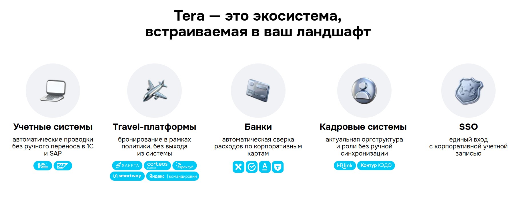 - интеграция с учетными системами, банками, travel-платформами и корпоративными сервисами.