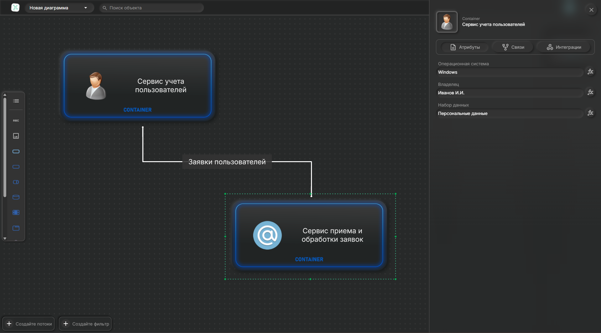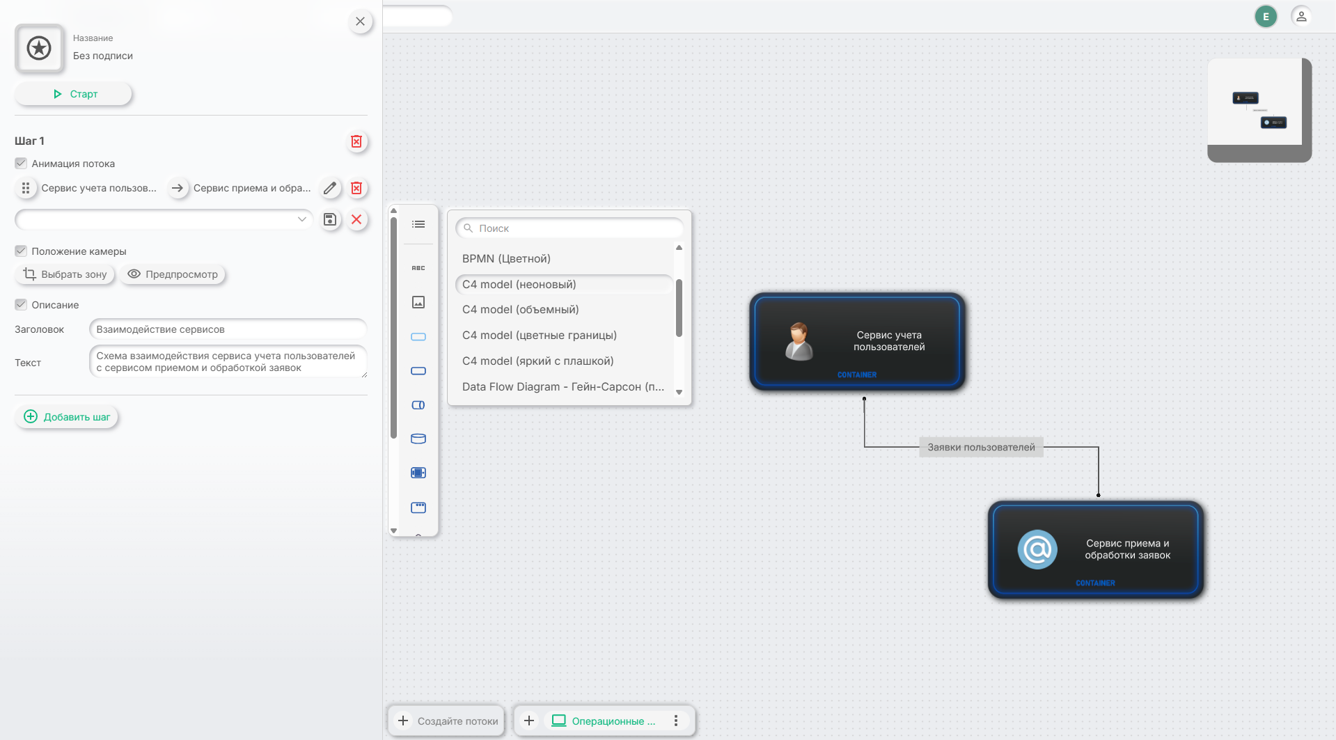 Canvarus — облачный сервис для построения архитектурных диаграмм. Откройте для себя возможности создания диаграмм с разными стилями, как при помощи графического редактора так и при помощи кода (DSL)